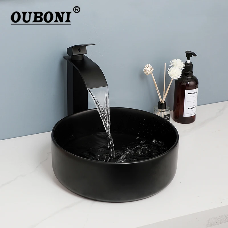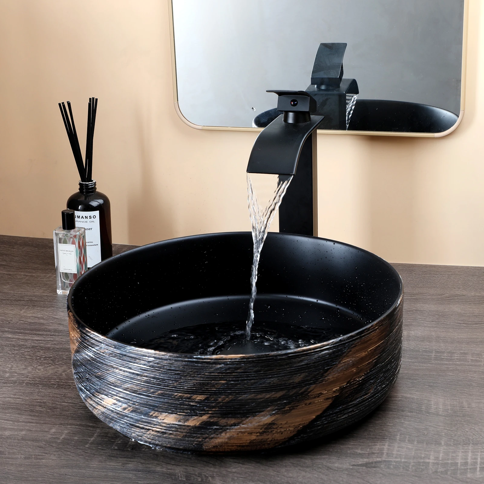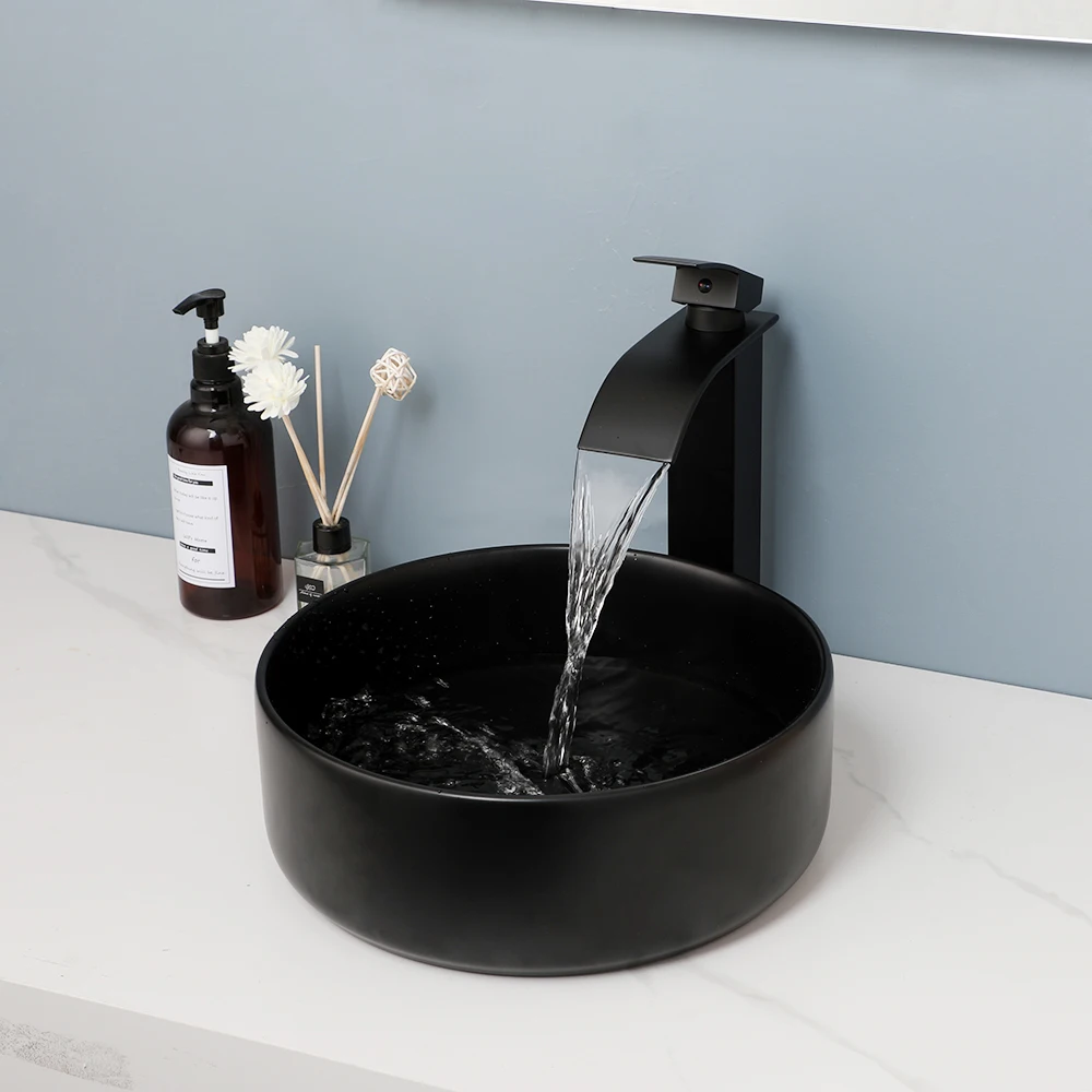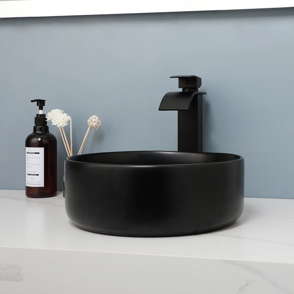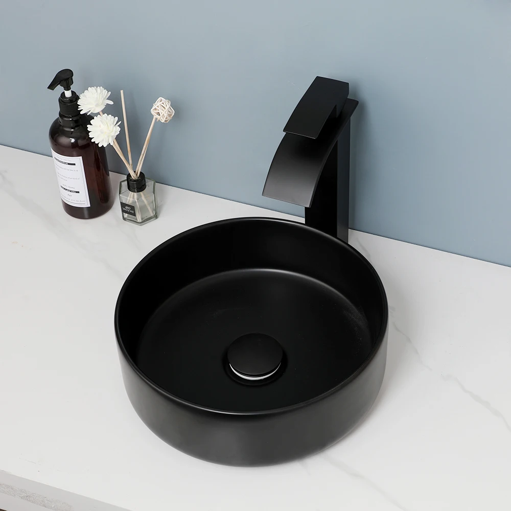 Black round bathroom ceramic vessel sink , well fit for any room style. The bathroom vessel sink with smooth matte black finish which creates the best sleek European that art beautifulBlack round bathroom ceramic vessel sink , well fit for any room style. The bathroom vessel sink with smooth matte black finish which creates the best sleek European that art beautiful